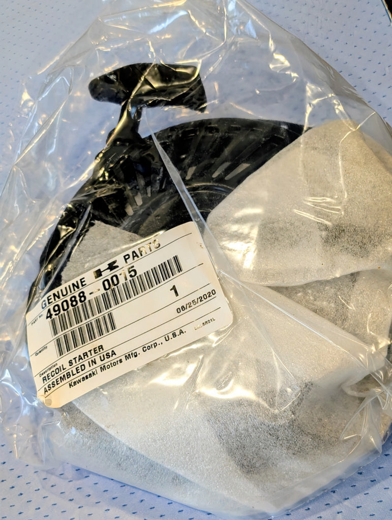 Brand New Genuine Kawasaki Recoil Starter... We are an Authorized Kawasaki Dealer... Recoil Starter Genuine Kawasaki Part # 49088-0015 Fits Specific Kawasaki FH381V-FH580V Model Engines Genuine OEM Kawasaki Part Please Note: Does not fit all specs of above models listed, please make sure this fits by model, type and serial number of your engine...
